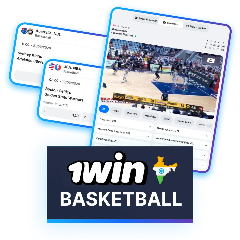 Basketball betting on 1win covers top leagues and daily match cards in one place. We offer over 240 betting options for basketball every day, so you can choose the lines that match your budget. Pick your markets before the match or place a bet after the game starts. New players can unlock a welcome bonus of up to INR 180,000 across four deposits, giving you more opportunities to bet.